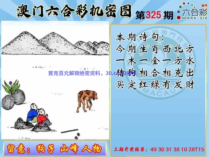 325期诗句:今期生肖西北方,一木一金一方水,猪狗相合相克出,买定红绿有发财
